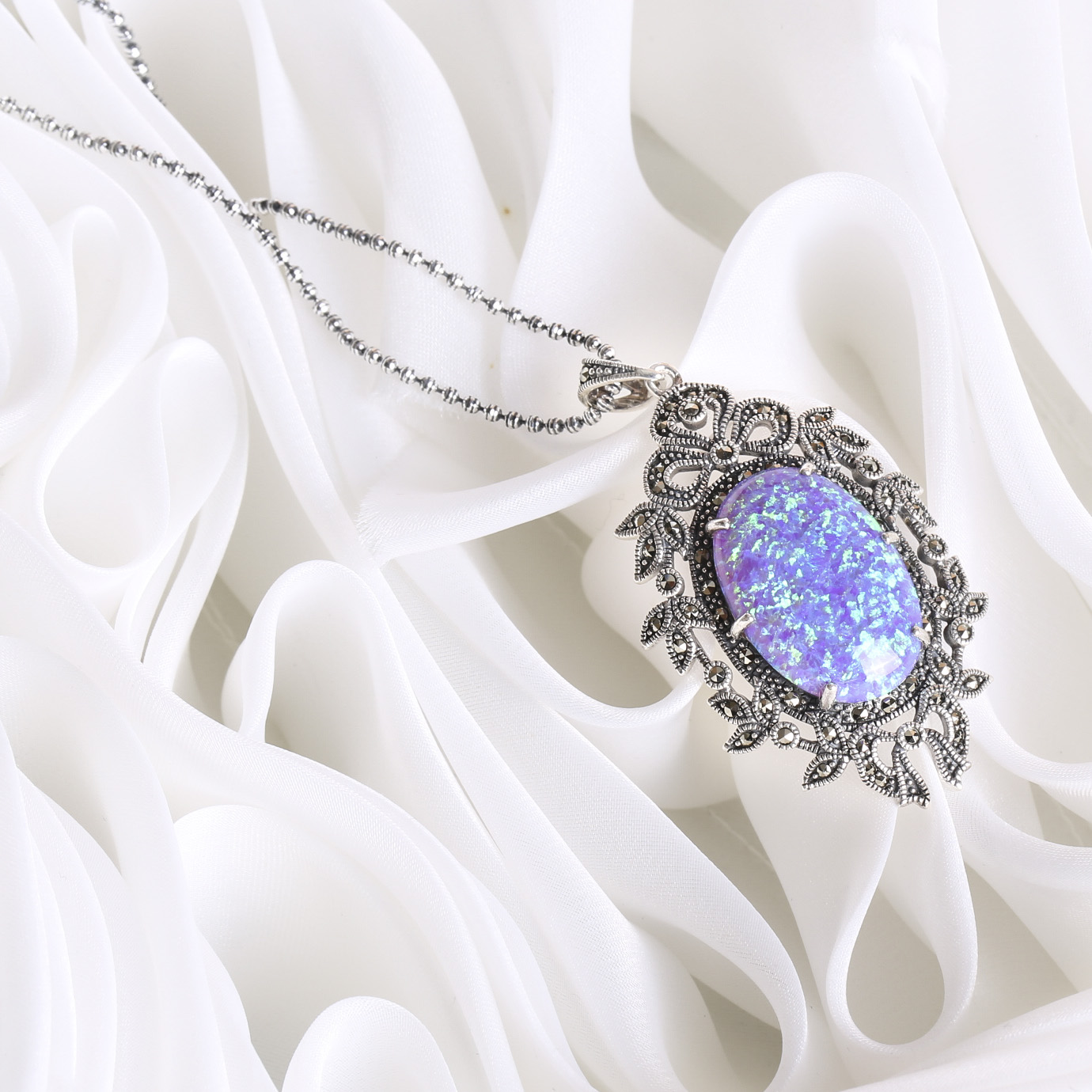 Another popular style is the station necklace, where small marcasite elements are evenly spaced along the chain. This design offers subtle sparkle and a refined appearance.